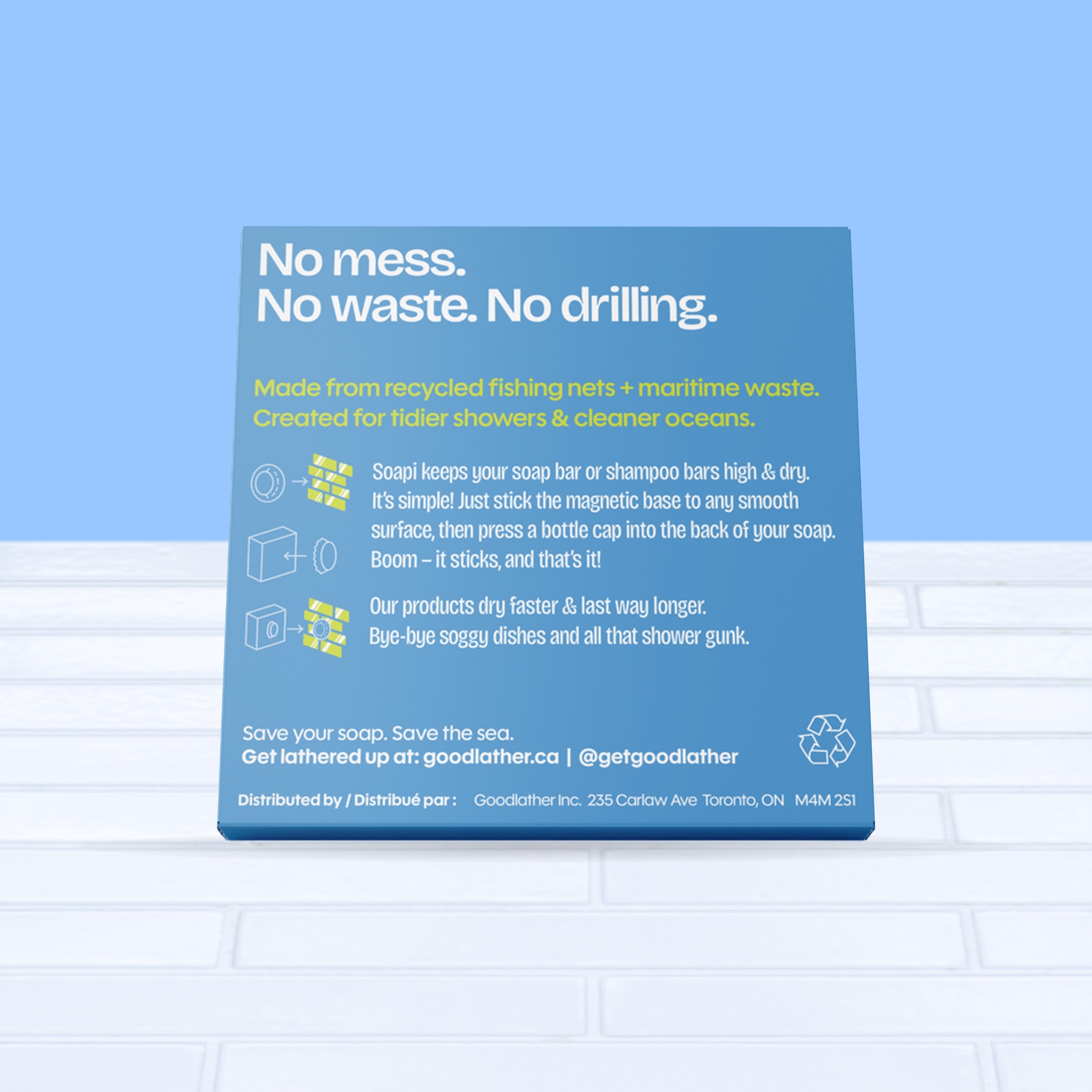 Meet Soapi: the tiny hero that keeps your soap high, dry, and drama‑free. Made from 95% Maritime Waste, this little magnetic wonder grips your bar like a champ and lets it air‑dry, so you can kiss slimy soap dishes goodbye. It’s clean, green, and way more fun than it has any right to be.